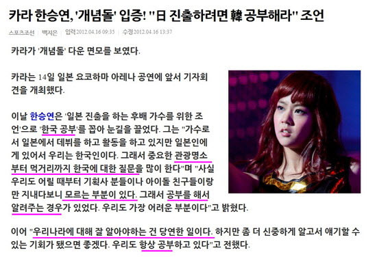 카라사태 뉴스기사 中