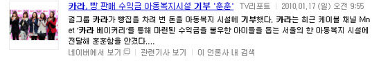 카라 베이커리,앨범수익금 기부,재능기부,쌀화환기부 등 기부
