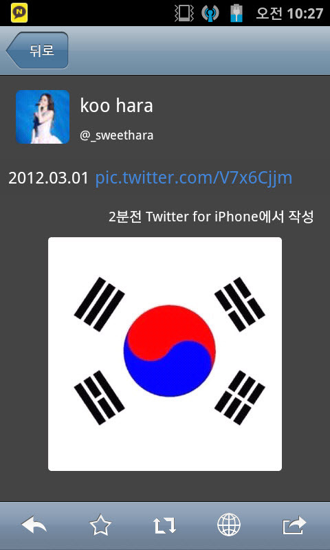 삼일절에 트위터에 태극기사진을 올린 구하라