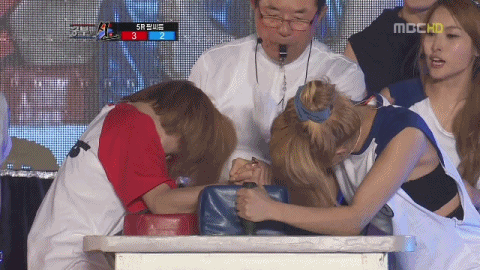 23일 방송된 MBC TV '일밤-승부의 신'에서는 카라와 시크릿이 5라운드에서 팔씨름 대결을 펼쳤다.
